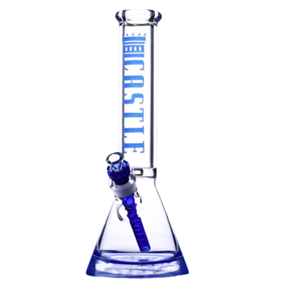 14'' 9mm Blue Logo Bong - Castle Glass