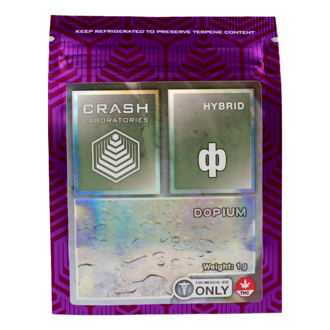 Prepare to embark on an extraordinary cannabis experience with Crash Labs' Dopium hybrid cannabis shatter. Crafted with meticulous care, Dopium offers a unique blend of euphoria and relaxation. As you indulge in its smooth, golden embrace, you'll be transported to a state of blissful tranquility. The perfect balance of uplifting energy and soothing calmness makes Dopium an ideal choice for any occasion. Its mesmerizing aroma fills the air with hints of citrus and pine, captivating your senses with each inhale. Let the potent effects of Dopium envelop your body and mind, melting away stress and tension. With Crash Labs' Dopium, you can elevate your cannabis experience to new heights. Discover the remarkable synergy of this hybrid strain and let it transport you to a world of blissful relaxation. Embrace the power of Dopium and unlock a state of pure euphoria. Indulge in the extraordinary with Crash Labs' Dopium hybrid cannabis shatter.