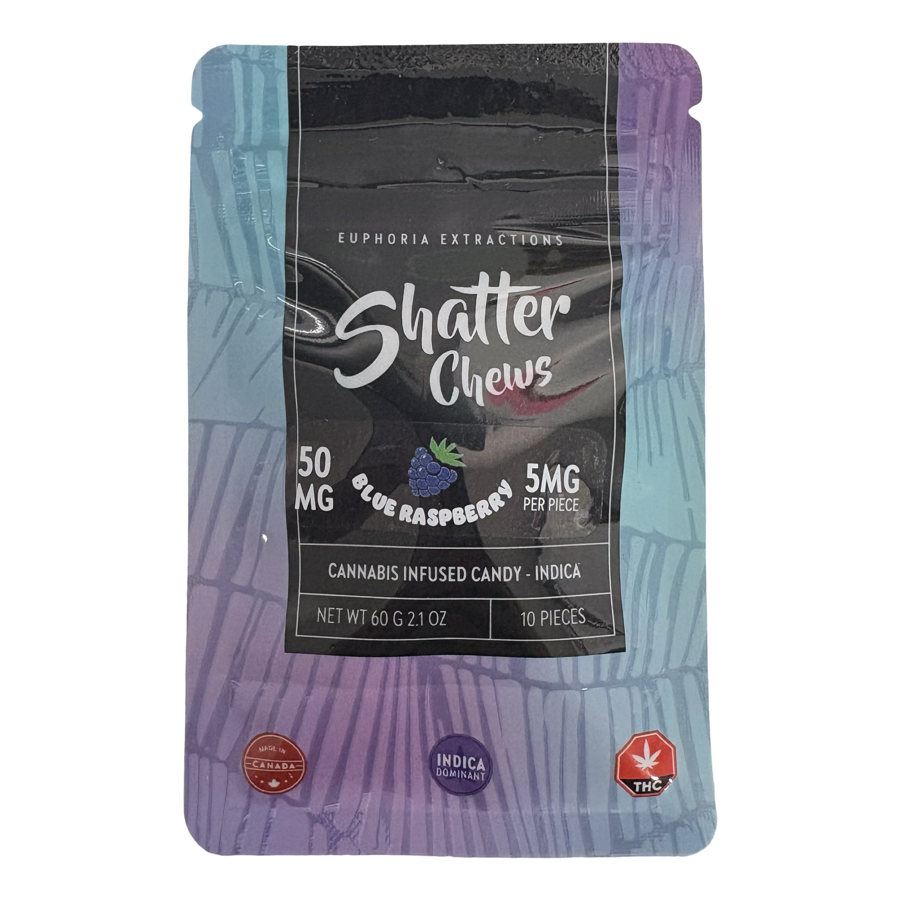 Blue Raspberry Shatter Chews - Indica - 50mg - Euphoria Exctracts