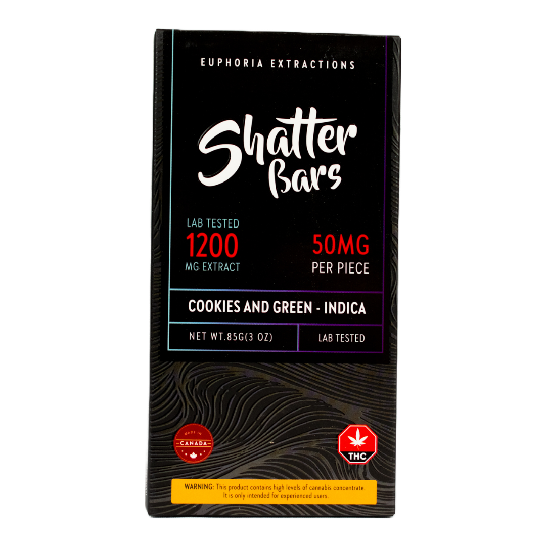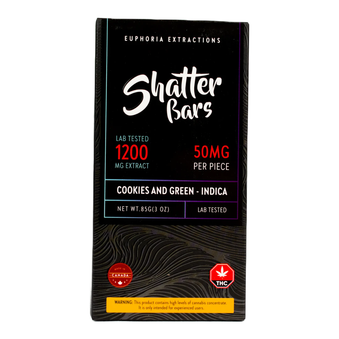 Immerse yourself in the indulgent flavors of Euphoria Extractions' Cookies N' Green Chocolate Bar. This indica-infused edible delivers a potent punch of 1200mg of THC, divided into 24 delectable pieces. Experience the perfect balance of rich chocolate and the subtle hint of cookies while enjoying the therapeutic effects of this premium edible. Elevate your cannabis experience with Euphoria Extractions' high-quality edibles.