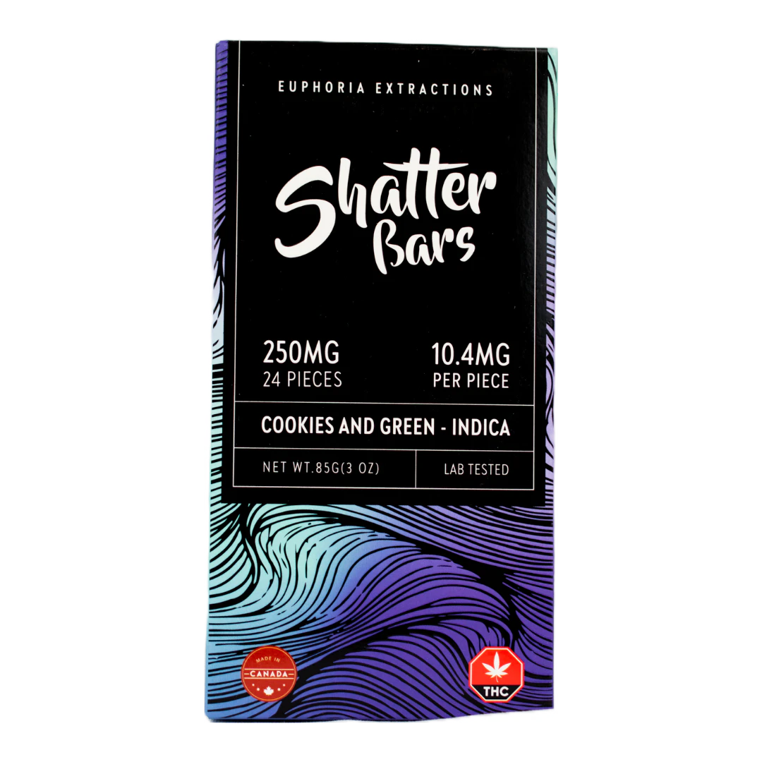 Experience the delightful combination of rich chocolate and the classic taste of cookies in Euphoria Extractions' Cookies N' Green Chocolate Bar. Indulge in the calming effects of this indica-infused edible with 250mg of THC, carefully divided into 24 pieces. Let the flavors and potency of this chocolate bar take you on a blissful journey. Elevate your cannabis experience with Euphoria Extractions' premium edibles.