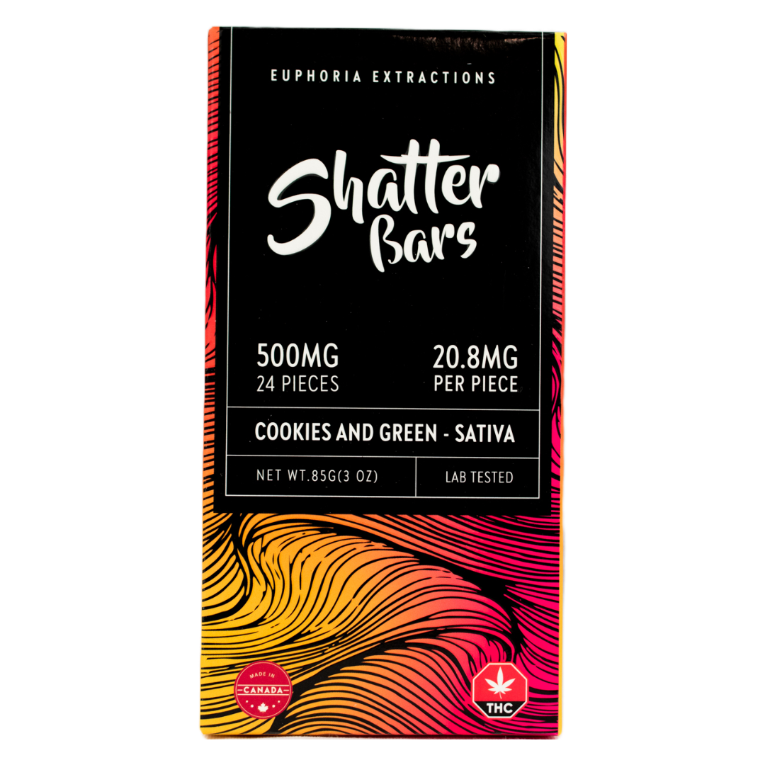 Experience pure bliss with Euphoria Extractions Cookies N' Green Chocolate Bar. Infused with 500mg of THC, this sativa edible offers 24 pieces of sheer delight. Indulge in the delectable combination of chocolate and cookies n' cream while enjoying the energizing effects of sativa. Elevate your edibles journey with Euphoria Extractions and savor the euphoria in every bite.