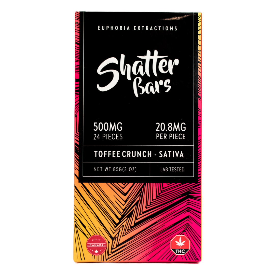 Satisfy your cravings and elevate your senses with Euphoria Extractions Toffee Crunch Chocolate Bar. Infused with 500mg of THC, this sativa edible offers 24 pieces of pure delight. Immerse yourself in the buttery toffee and smooth chocolate, while experiencing the uplifting effects of sativa. Discover the ultimate combination of taste and potency with Euphoria Extractions edibles.