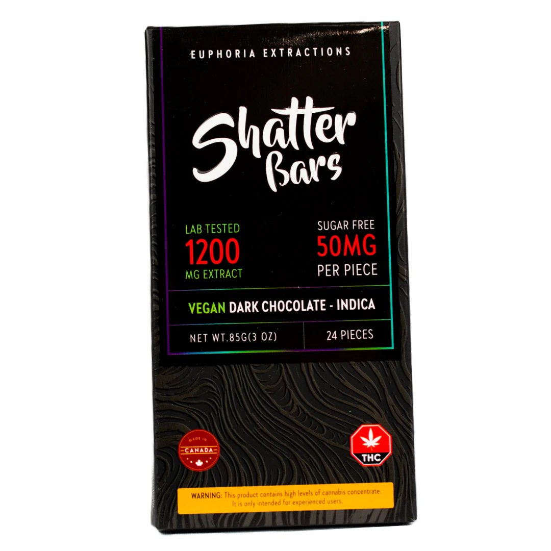 Indulge in the luxurious taste of Euphoria Extractions' Vegan Dark Chocolate Bar. Infused with a potent 1200mg of THC, this indulgent indica edible is divided into 24 delectable pieces. Immerse yourself in the rich and velvety dark chocolate flavors while enjoying the blissful effects of this premium edible. Elevate your edibles journey with Euphoria Extractions and discover the perfect combination of taste and potency in every bite.
